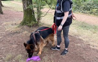 Working as a team with your dog to find a “missing person” by following the scent trail from a scent article they leave behind. As a Mantrailing UK certified instructor of 3years, I use the Kocher method for trailing, focusing on finding the right reward for each dog, combined with intensity trails, to keep motivation at the highest high for each dog handler team.