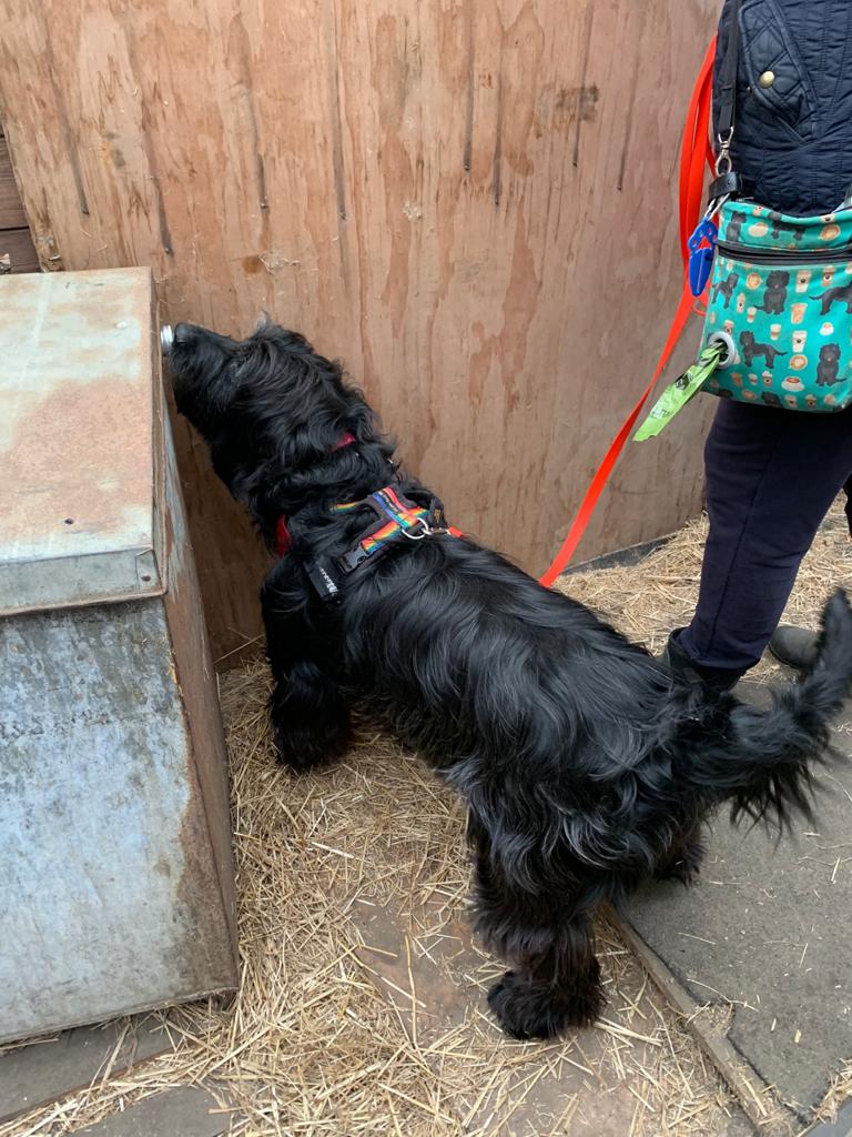 Harnessing your dog’s natural ability to scent discriminate by teaching your dog to find a target scent and communicate when they’ve found it, through pairing a high value reward with the scent itself and building an indication behaviour.